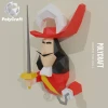 Captain Hook, Capitan Garfio Papercraft Wall paper model, PDF Pirates template, Peter Pan lowpoly, wall decor DIY, fantasy paper, sculpture, pepakura, Lowpoly, Papercraft, Lowpoly Papercraft